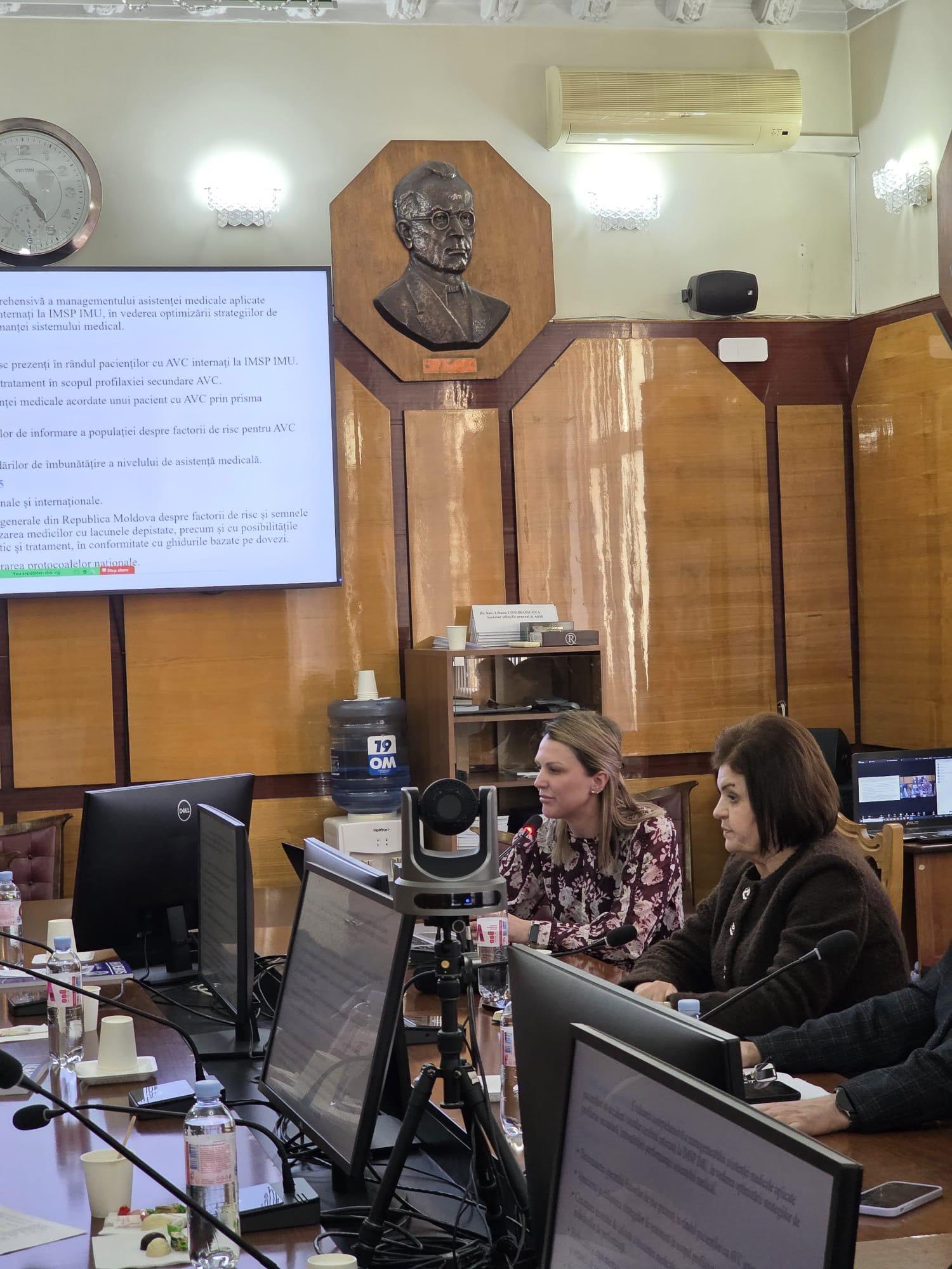 Cel de-al doilea raport, intitulat „Managementul accidentului vascular cerebral în CC Stroke”, a fost prezentat de dr. șt. med. Natalia Ciobanu. În cadrul audierilor, reprezentanții Institutului au prezentat rezultatele științifice obținute, indicatorii de performanță realizați, precum și impactul științific și practic al cercetărilor implementate.